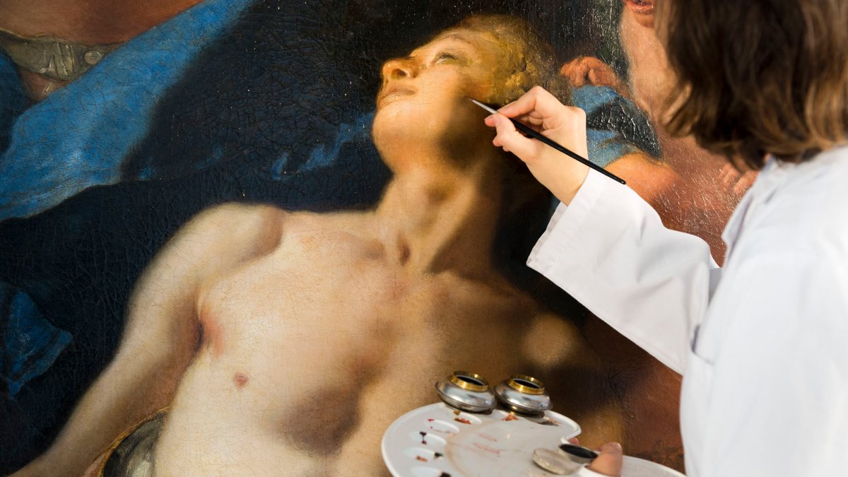 The restoration of The Death of Hyacinthus has been focused chiefly on the complex task of removing the successive layers of discoloured varnish and grime that had built up over time. Cleaning has returned the aesthetic unity and the vibrant, richly hued colours of the original painting.